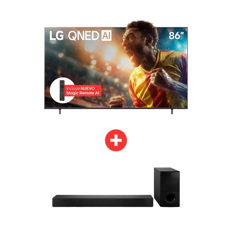 TV LG 86" Pulgadas 217 Cm 86QNED73ASA 4K-UHD QNED Smart TV con IA + Barra de Sonido LG SH5 de 600 Watts