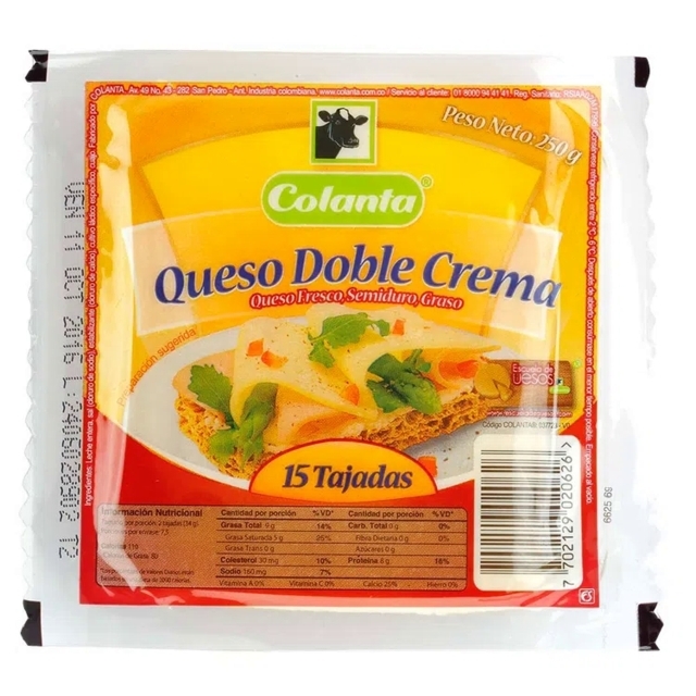 QUESO COLANTA DOBLE CREMA x 250 gr TAJADO